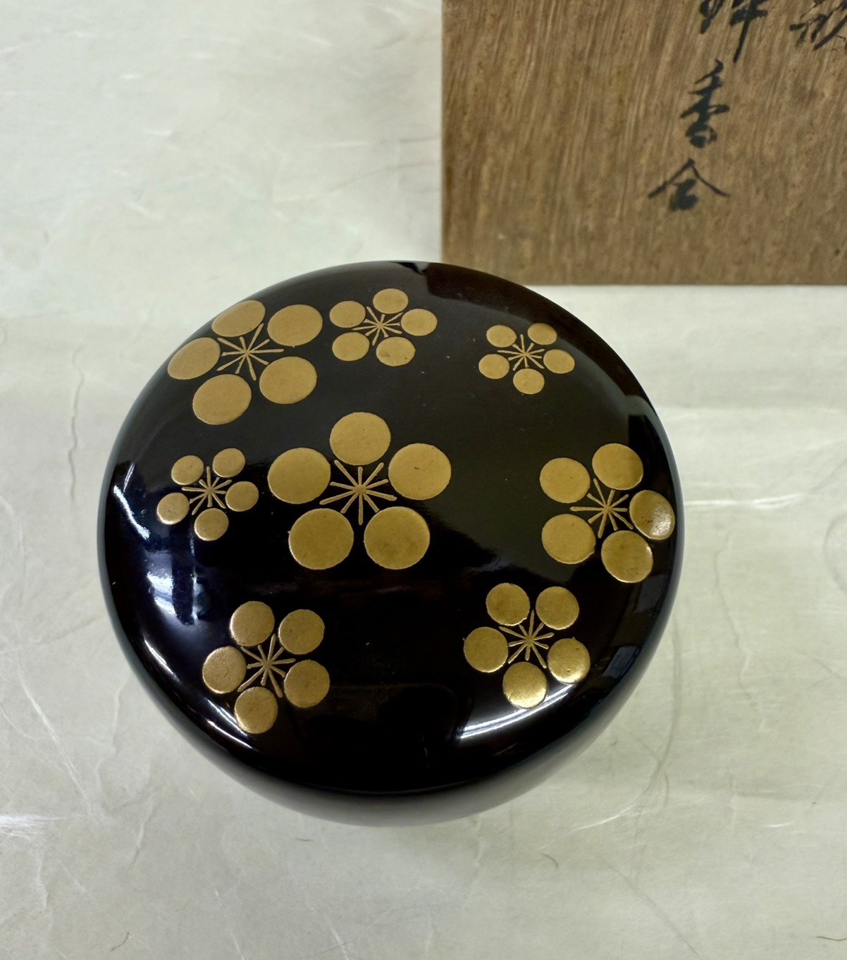 ◆古物◆香合 梅鉢 利休梅 堅地屋清兵衛 桐箱入り