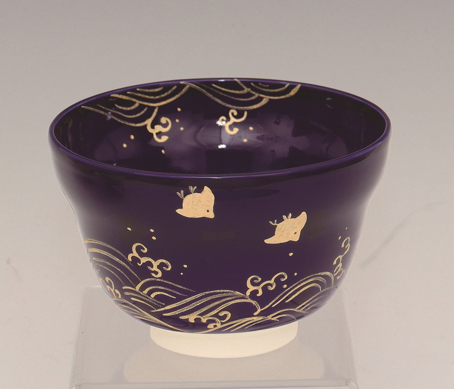 茶碗 瑠璃釉 金彩 波千鳥 加藤永山 化粧箱
